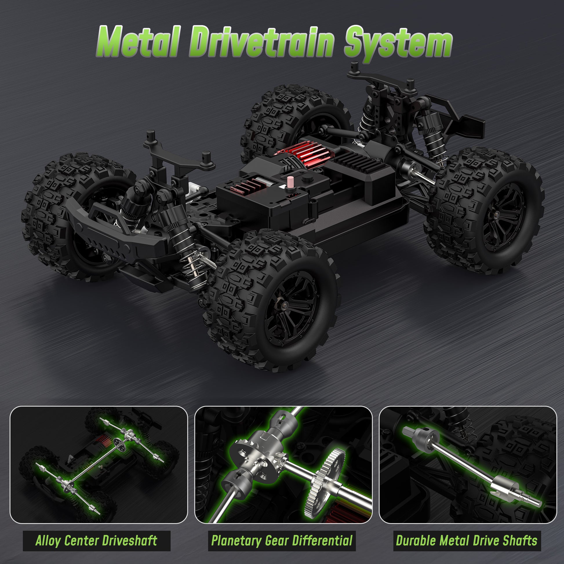 - Features metal center drive shaft, 4 metal wheel axles, and planetary gear differential for maximum durability and smooth power transfer.